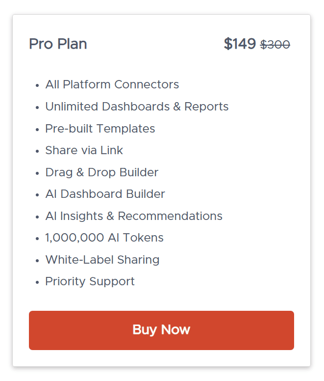 - Builder tools: Drag-and-drop builder, AI dashboard builder