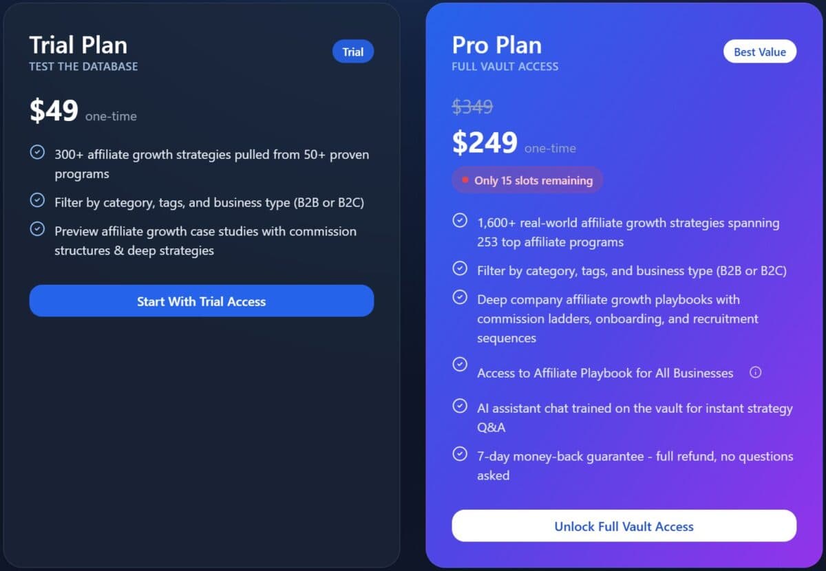 - 1,600+ real-world affiliate growth strategies spanning 253 top affiliate programs