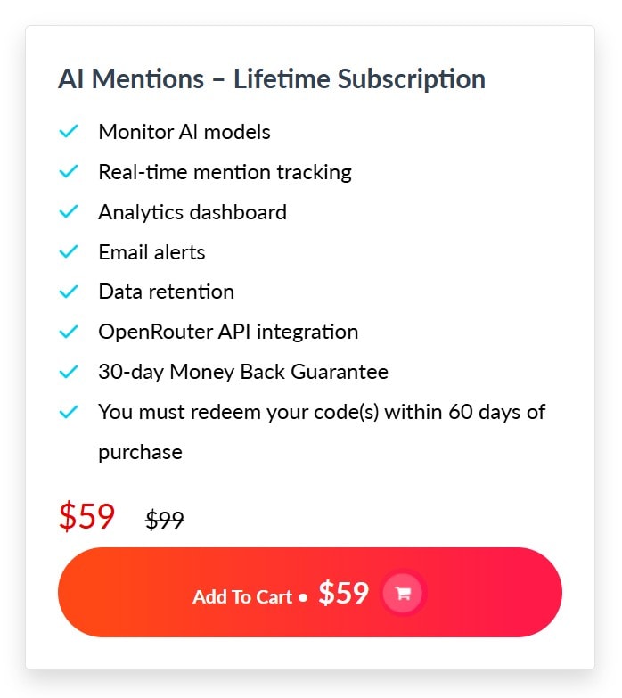 🎁 Get the AI Mentions lifetime deal for $59 with the following features: