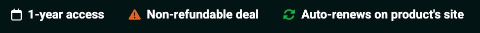 - Access duration: 1‑year access, non‑refundable, auto‑renews on product’s site