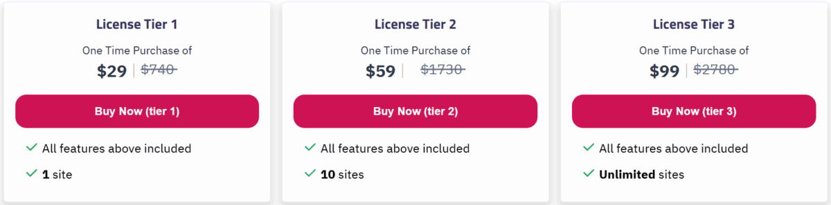 - Tier 3: Get Unlimited Sites for $99 including all the benefits above.
