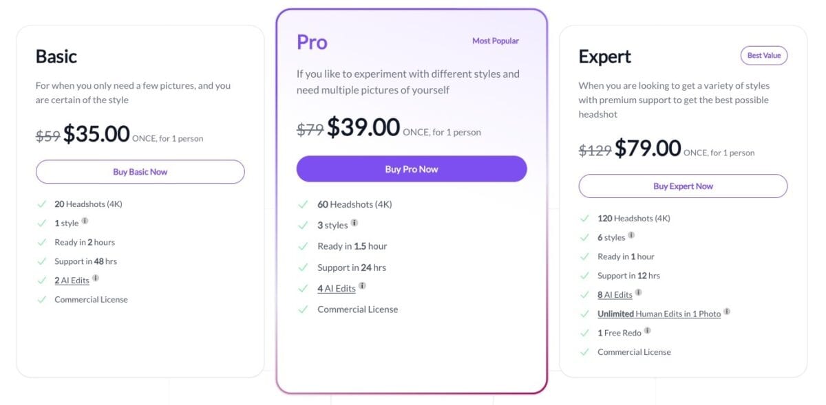 - Unlimited human edits in 1 photo