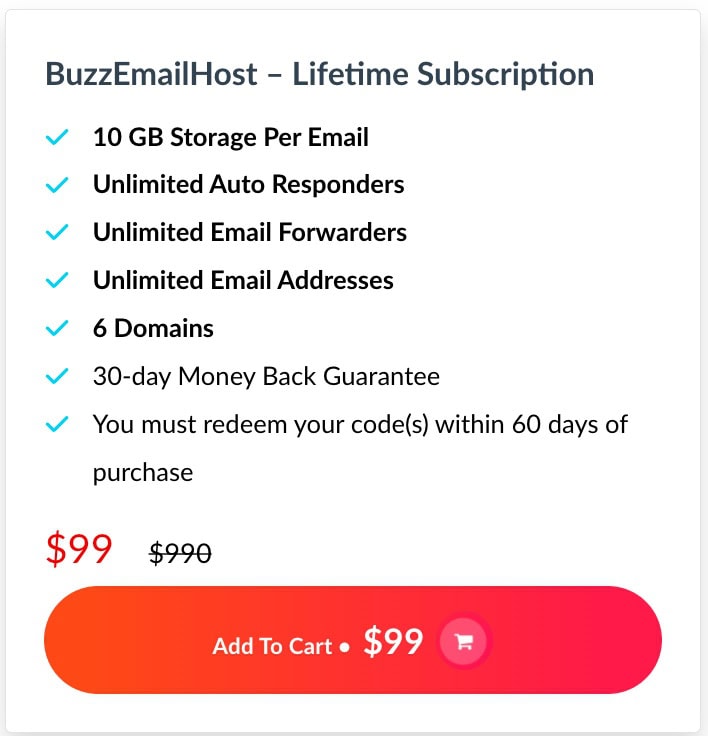 🎯 Get BuzzEmailHost Lifetime Deal for $99 with following features: