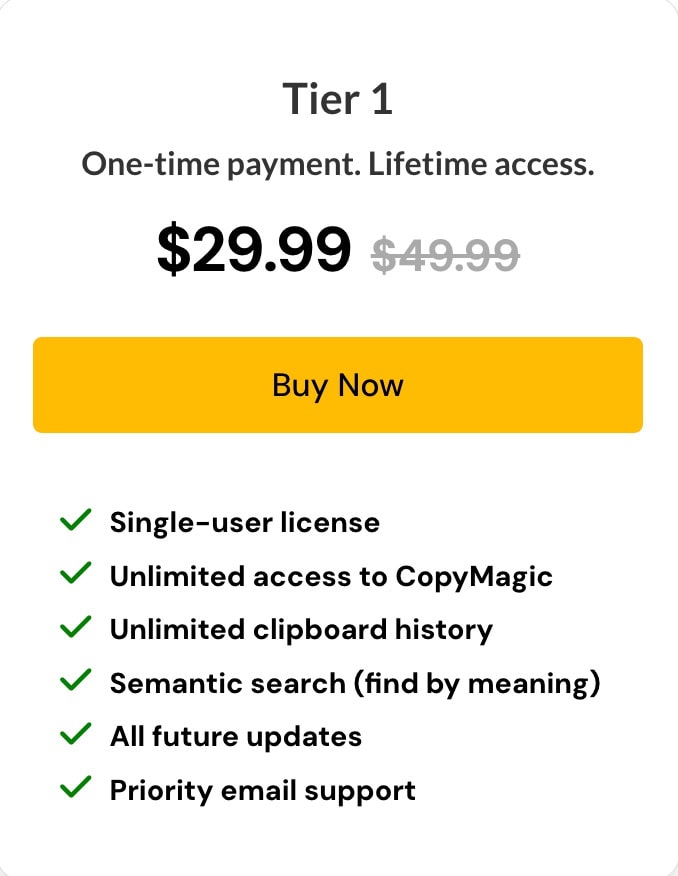🎯 Get CopyMagic Lifetime Deal for $29.99 (Regular Price $49.99) with following features: