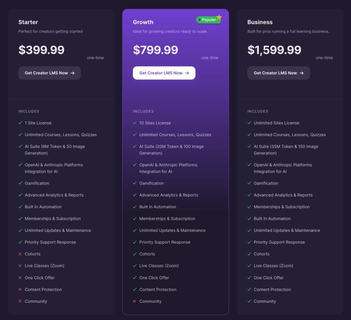 🥈 Get Creator LMS Lifetime Deal Growth for $359.99 (regular $799.99) with everything above +