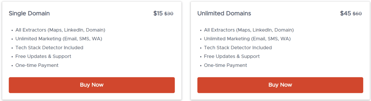 - All extractors included: Maps, LinkedIn, Domain