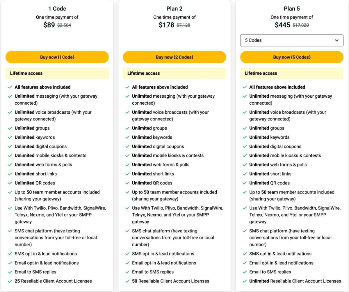 🎖️ Get Easy Text Marketing Platform Lifetime Deal 5 Codes for $445 with everything above +
