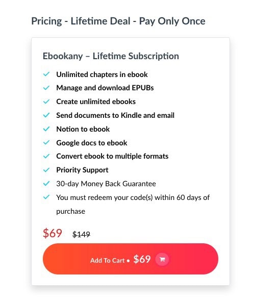 ๐ Get the Ebookany lifetime deal for $69 with the following features: