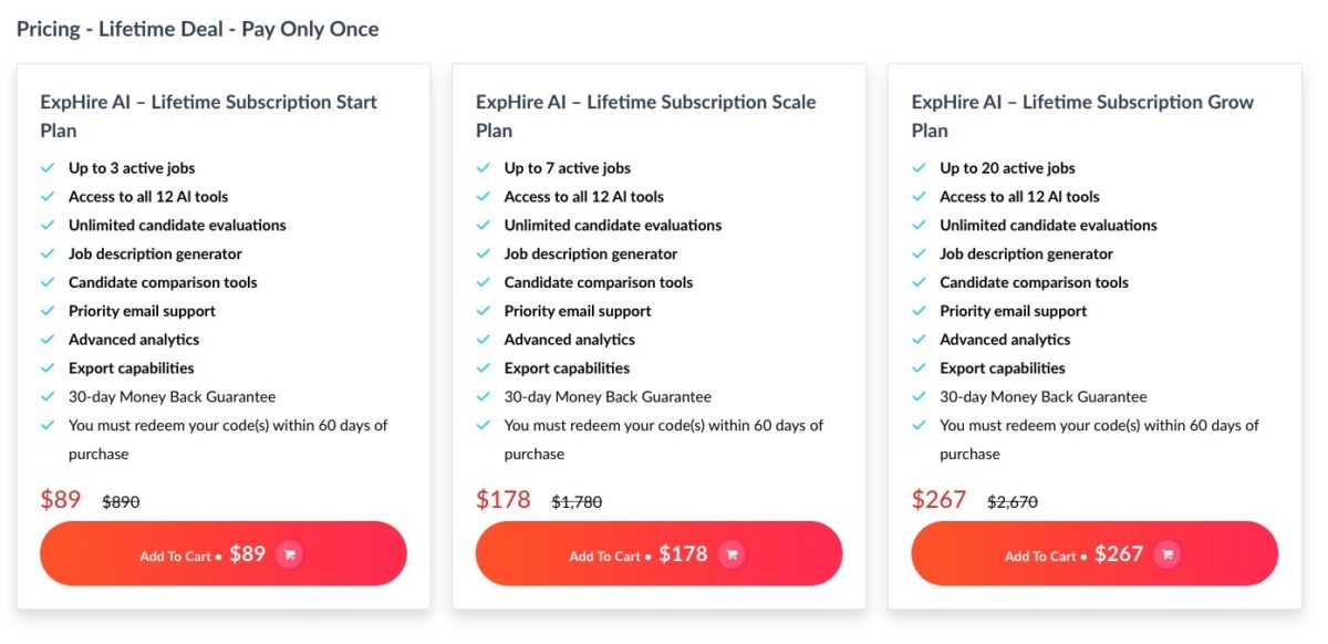 Get ExpHire AI Lifetime Deal Grow Plan for $267 with everything above +