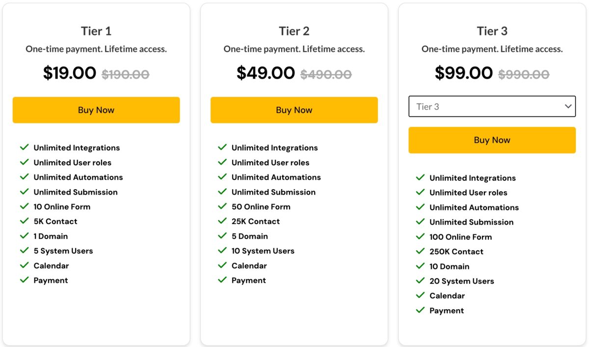 🥉 Get Formbuildly Lifetime Deal Tier-3 for $99 with everything above +