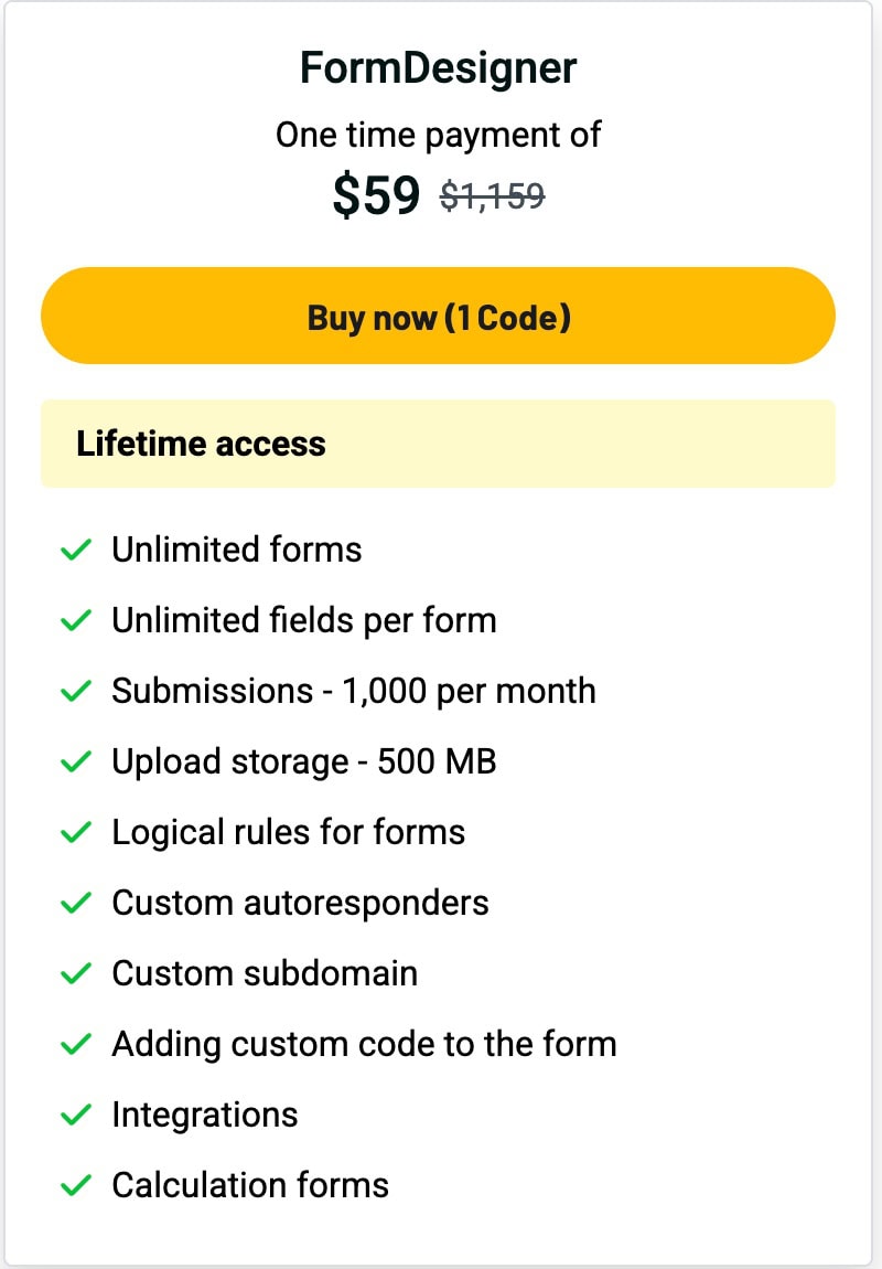 🥇 Get FormDesigner Lifetime Deal for $59 with following features: