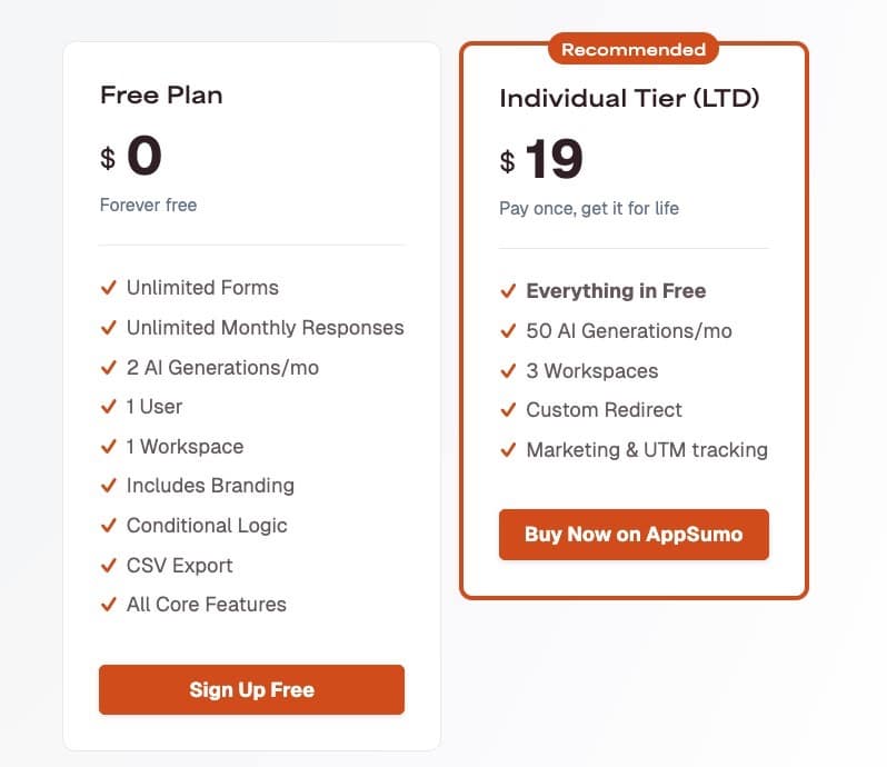Get FormRobin Free Plan for $0 Forever free with following features: