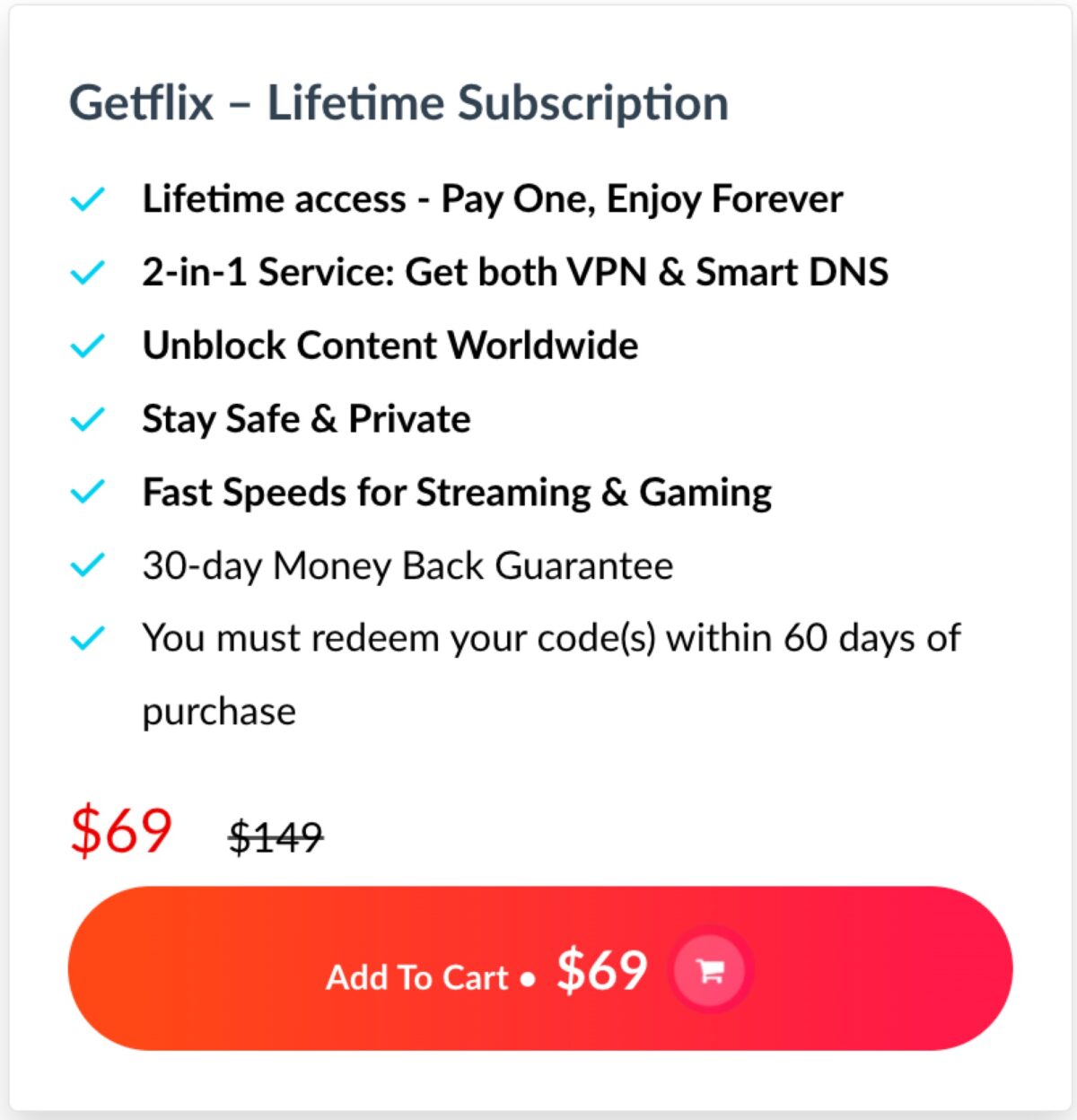 ✨ Getflix Lifetime Deal for $69 with the following features: