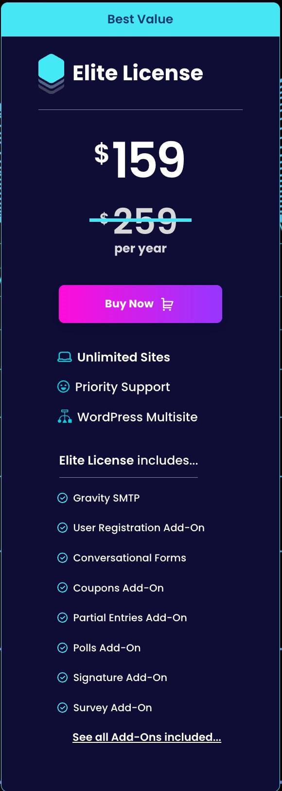 👑 Gravity Forms Elite License Annual Plan for $159 per year with following features: