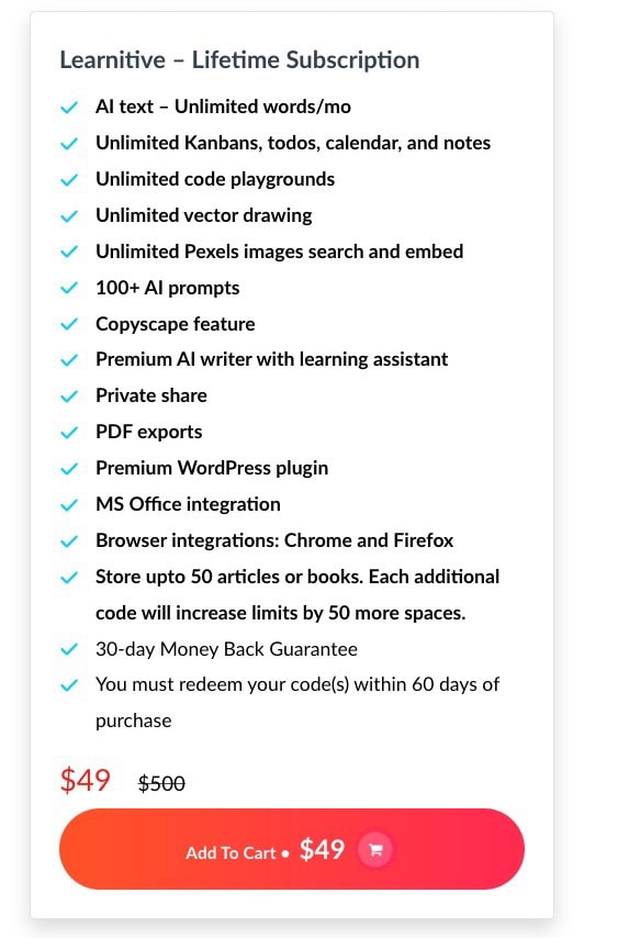 👑 Learnitive Lifetime Subscription Deal for $49 with following features: