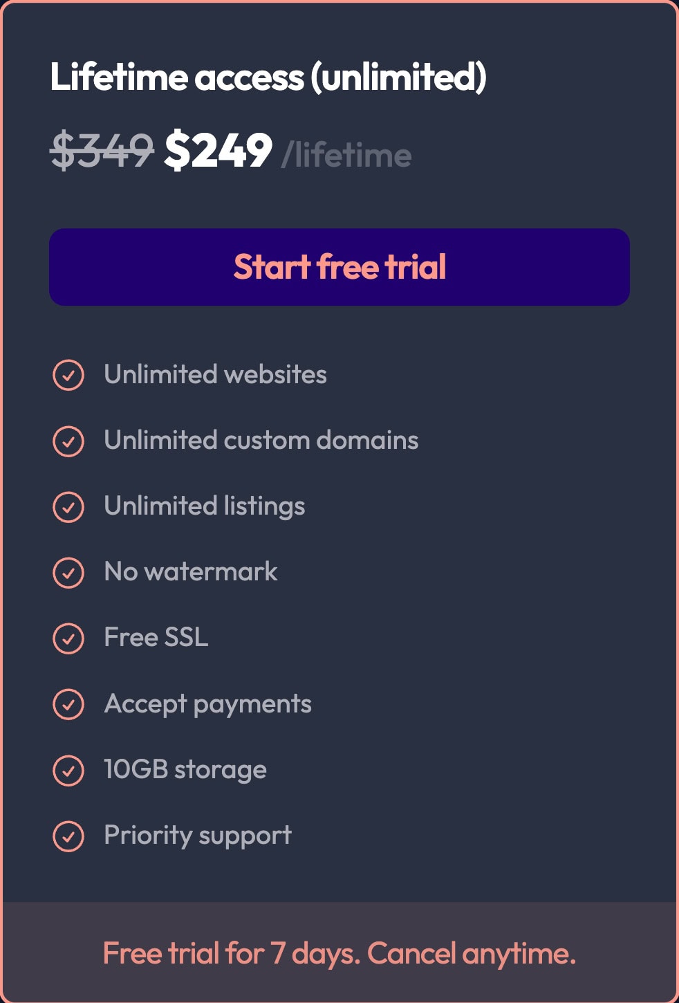 🌐 Unlimited potential—Lifetime access unlocks unlimited websites, domains, and listings, perfect for agencies, entrepreneurs, and community builders.