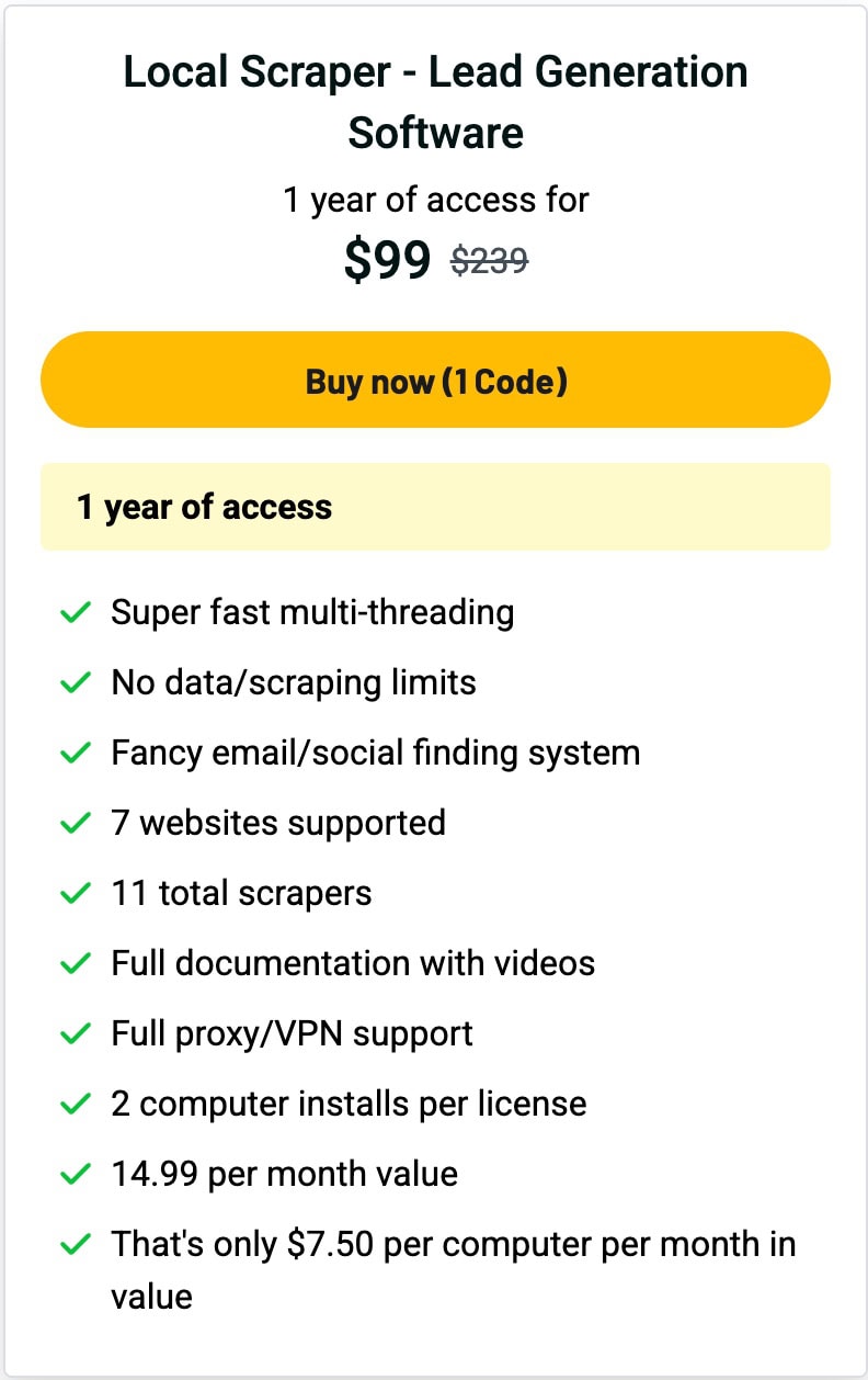 🥇 Get Local Scraper Deal for $99 with following features: