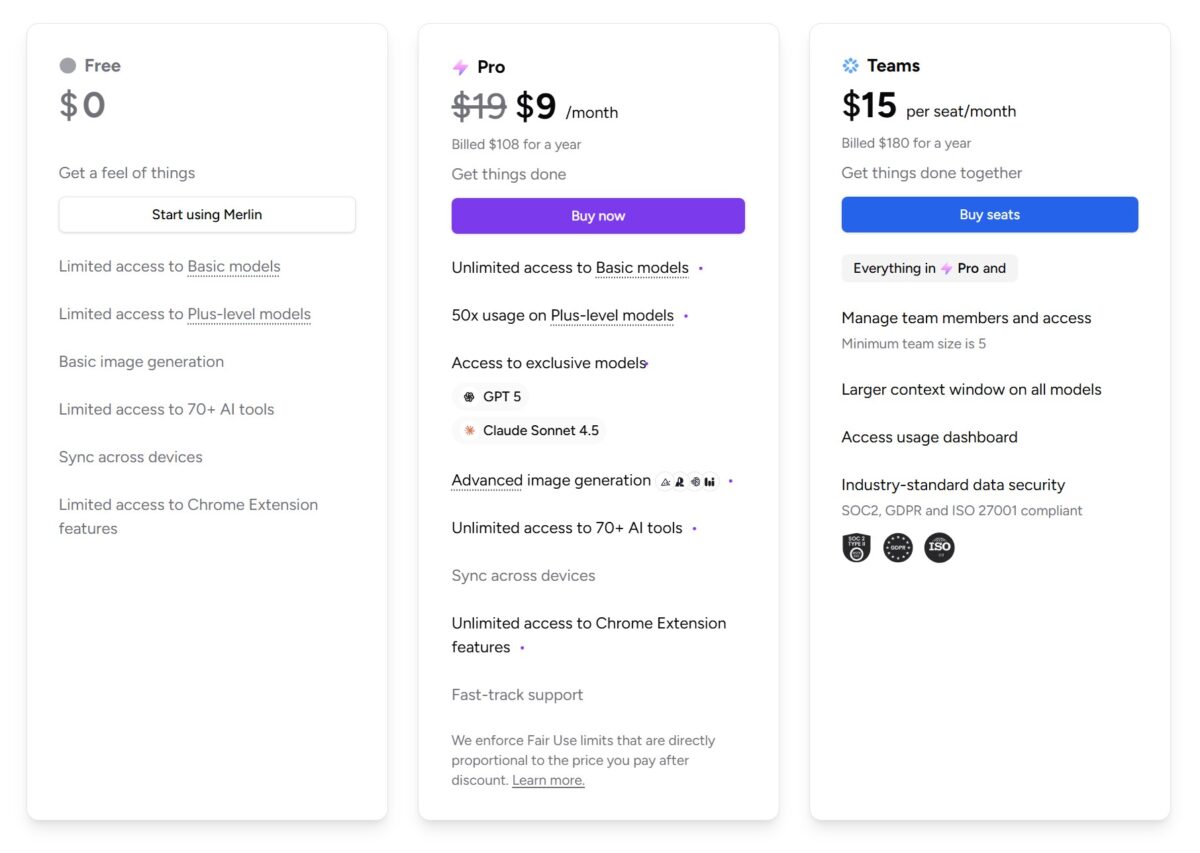 ๐ฅย Get Merlin Teams Plan for $15 per seat per month (billed $180 per seat per year) with the following features: