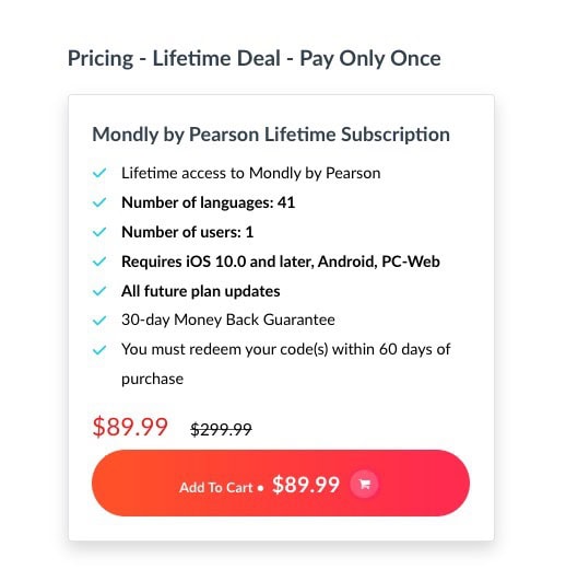 Get Mondly by Pearson Lifetime Subscription for $89.99 with following features: