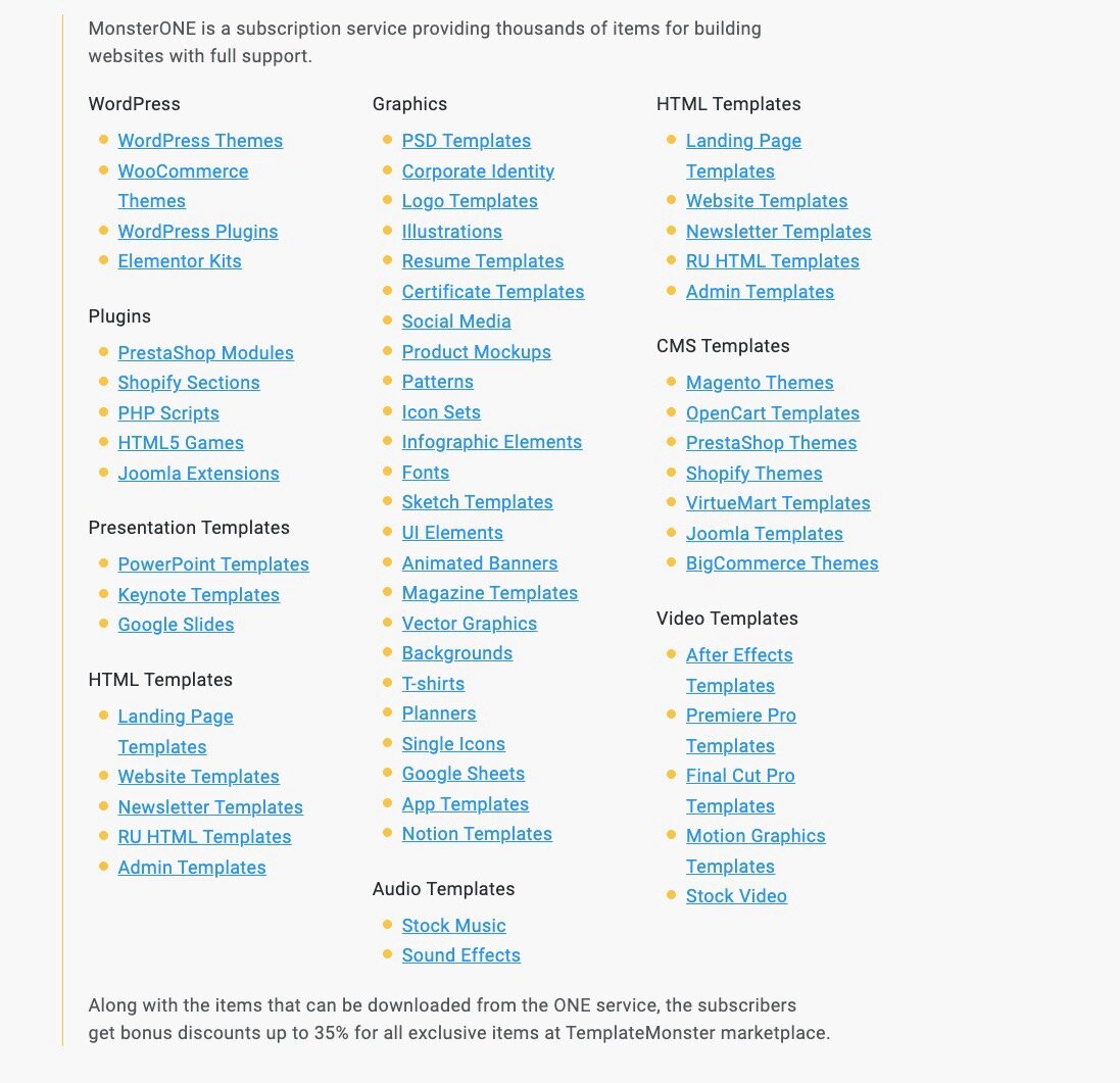 Note: The subscription includes only products presented on the marketplace with the MonsterONE label.