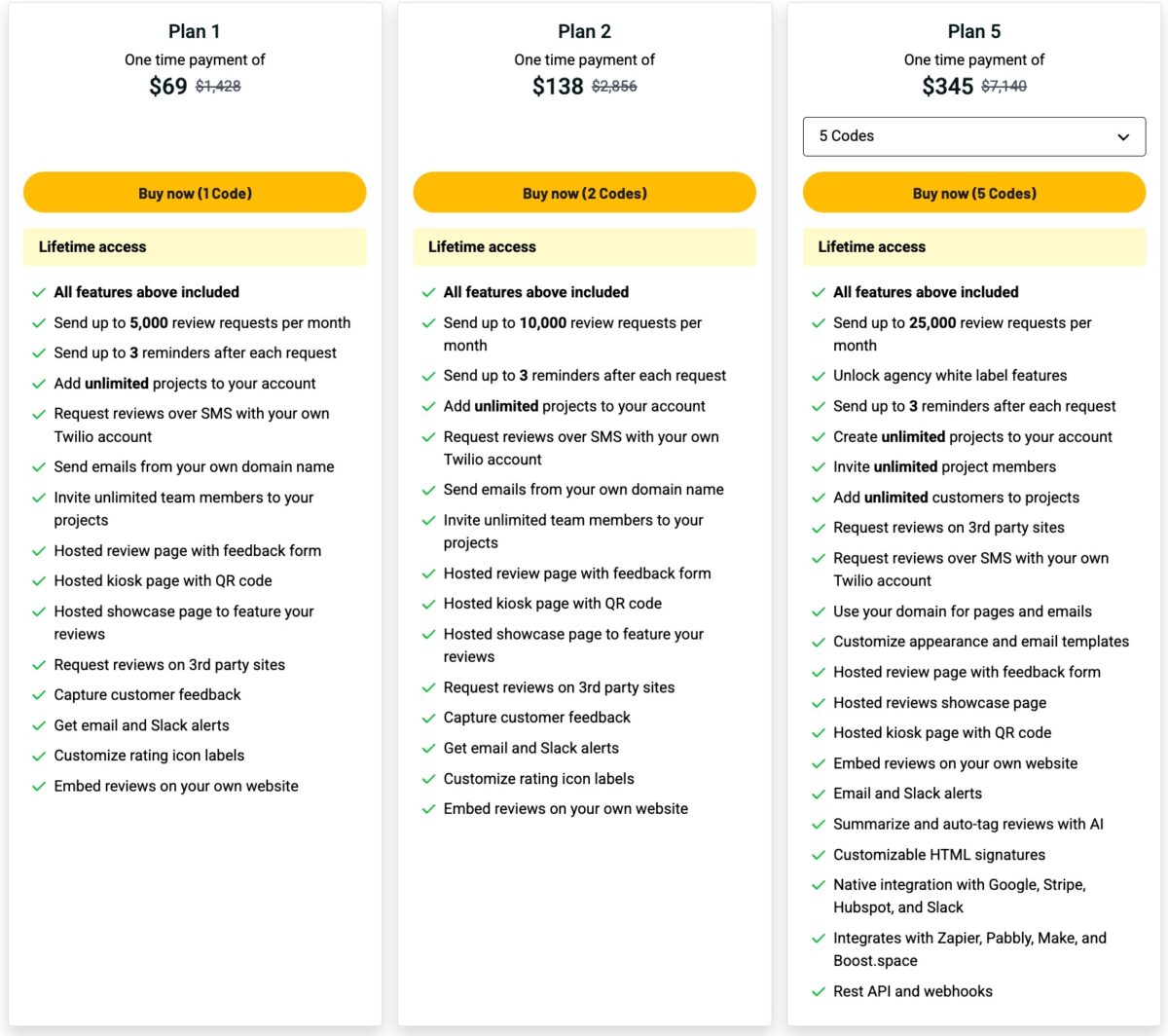 🎖️ Get More Good Reviews Lifetime Deal Plan 5 for $345 with everything above +