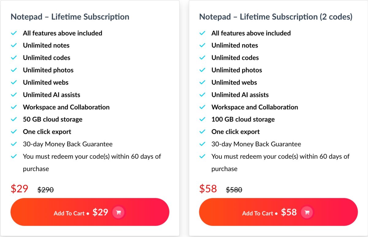 🏅 Get Notepad Lifetime Subscription Tier-2 for $58 with everything above +