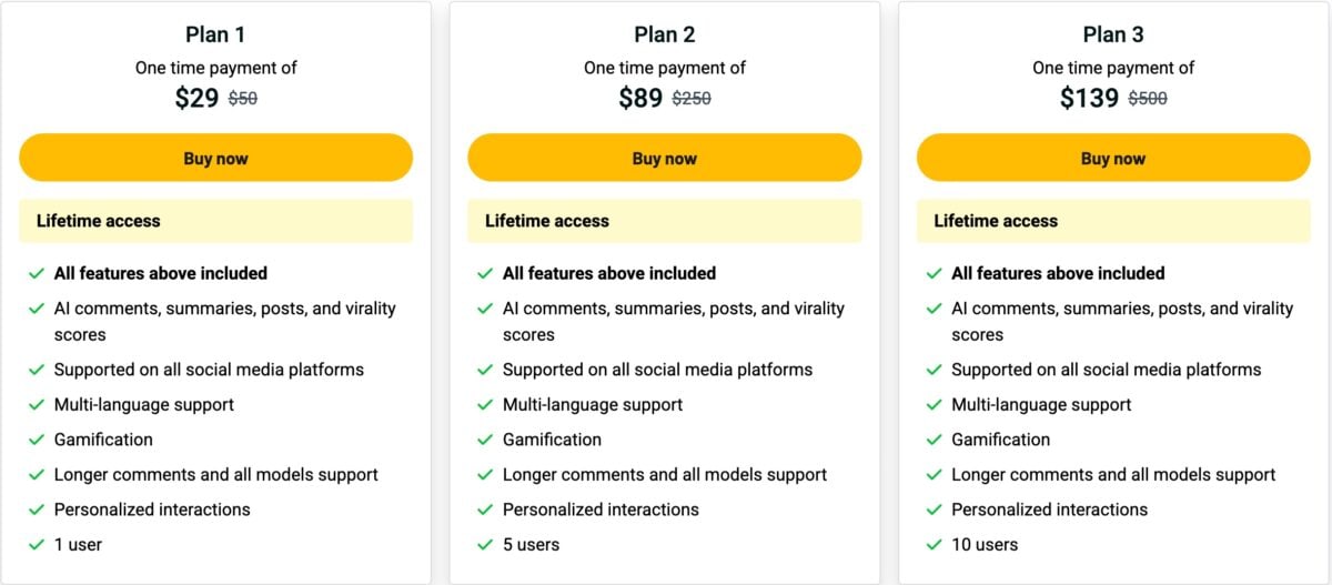 - AI comments, summaries, posts, and virality scores