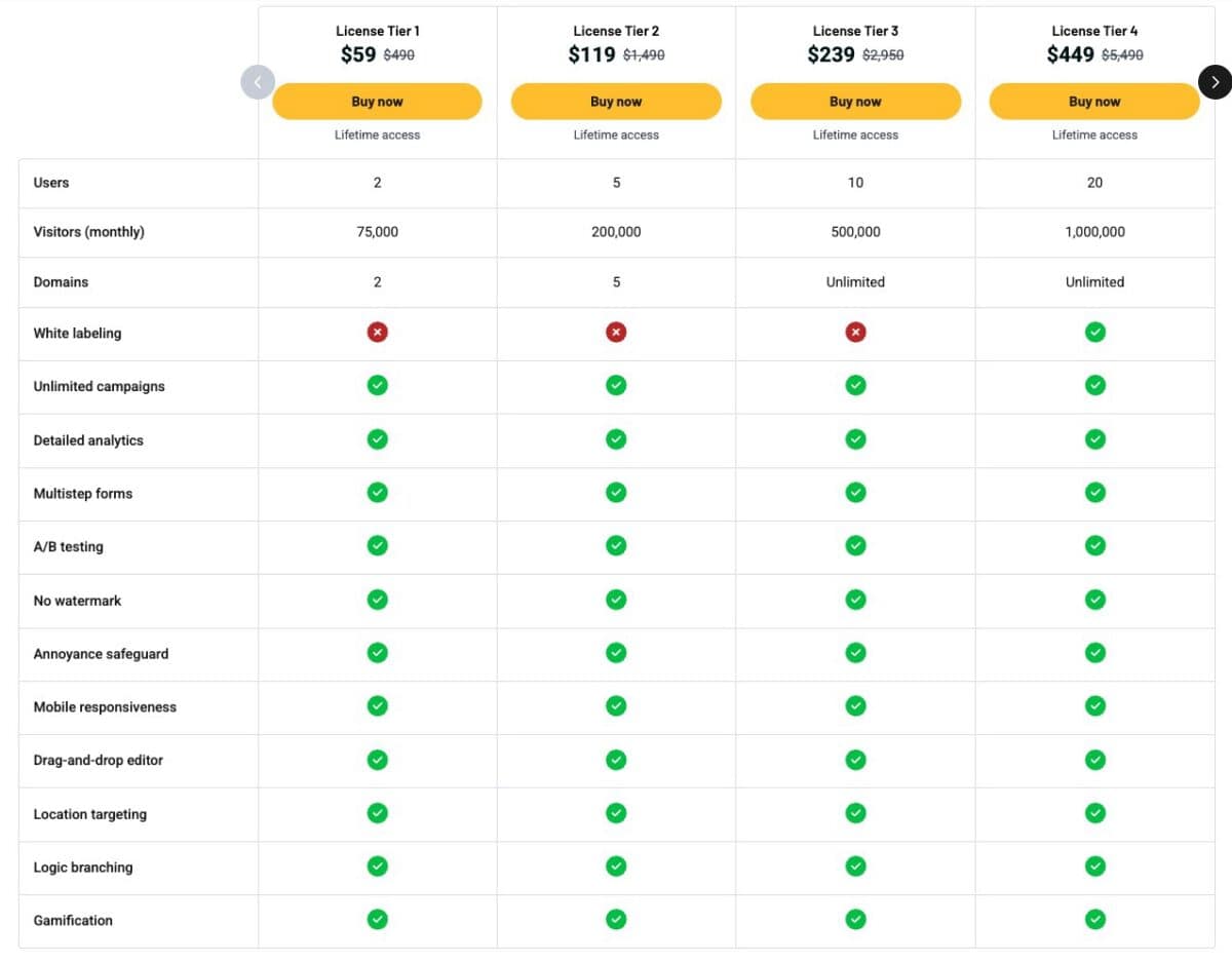 - Multistep forms, A/B testing, detailed analytics, logic branching,