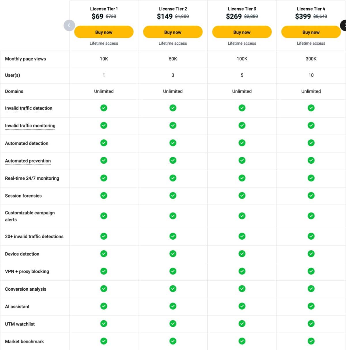 - 20+ invalid traffic detection signals