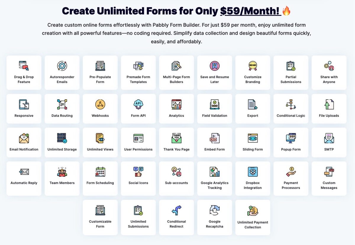 Get All Pabbly Apps Unlimited Deal for $59/mo with following features: