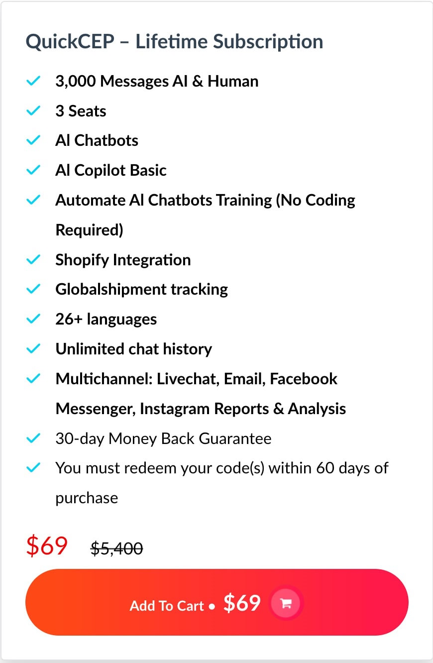 🎯 Get QuickCEP Lifetime Deal for $69 with following features: