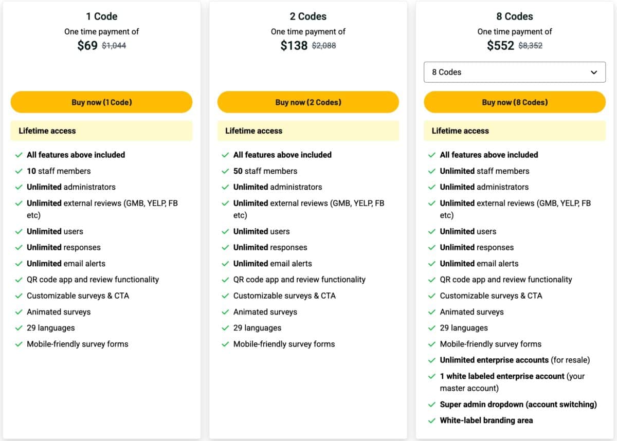 🥉 Get RateMyService Lifetime Deal 3 Codes for $207 with everything above +