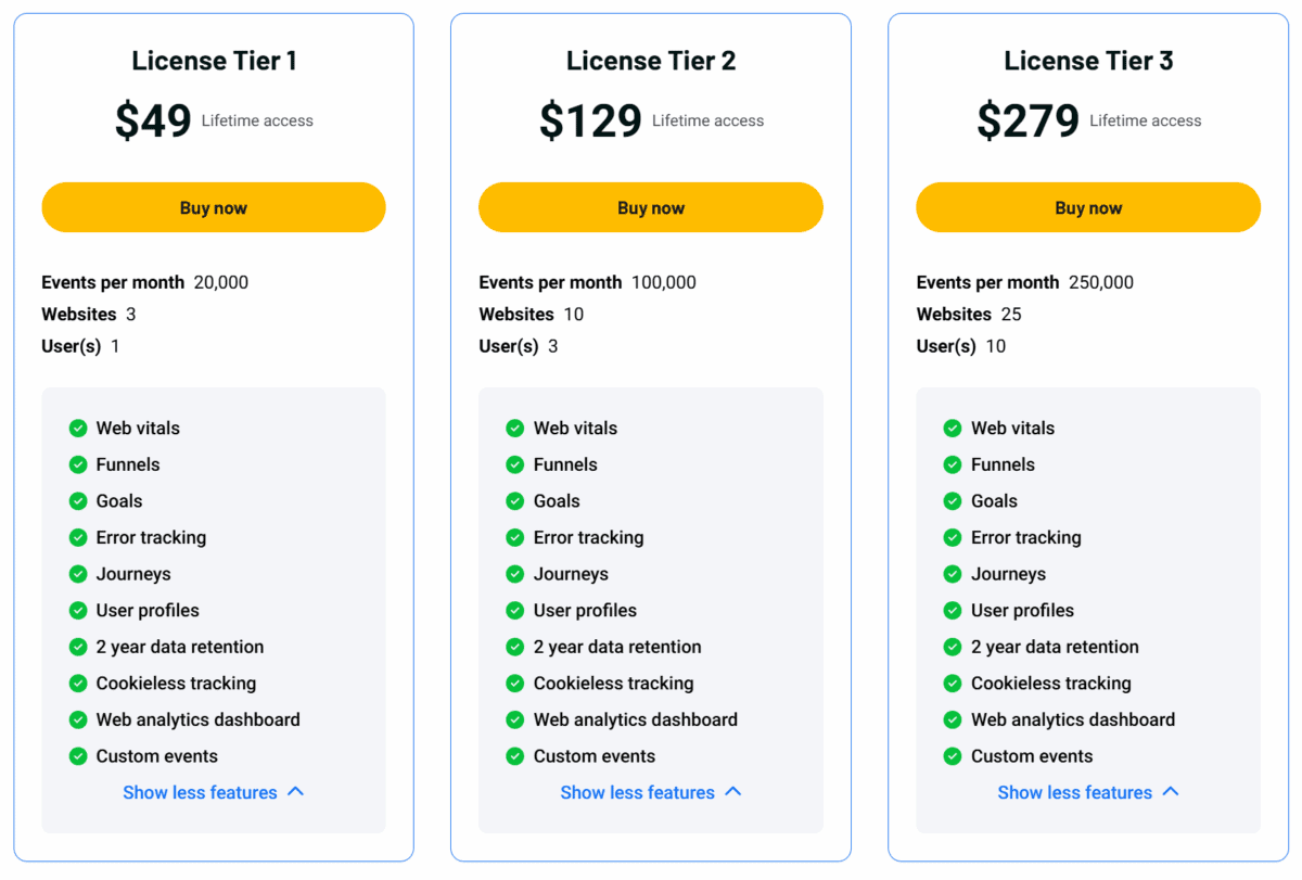 🥇 Get Rybbit Lifetime Deal License Tier 1 for $49 with the following features: