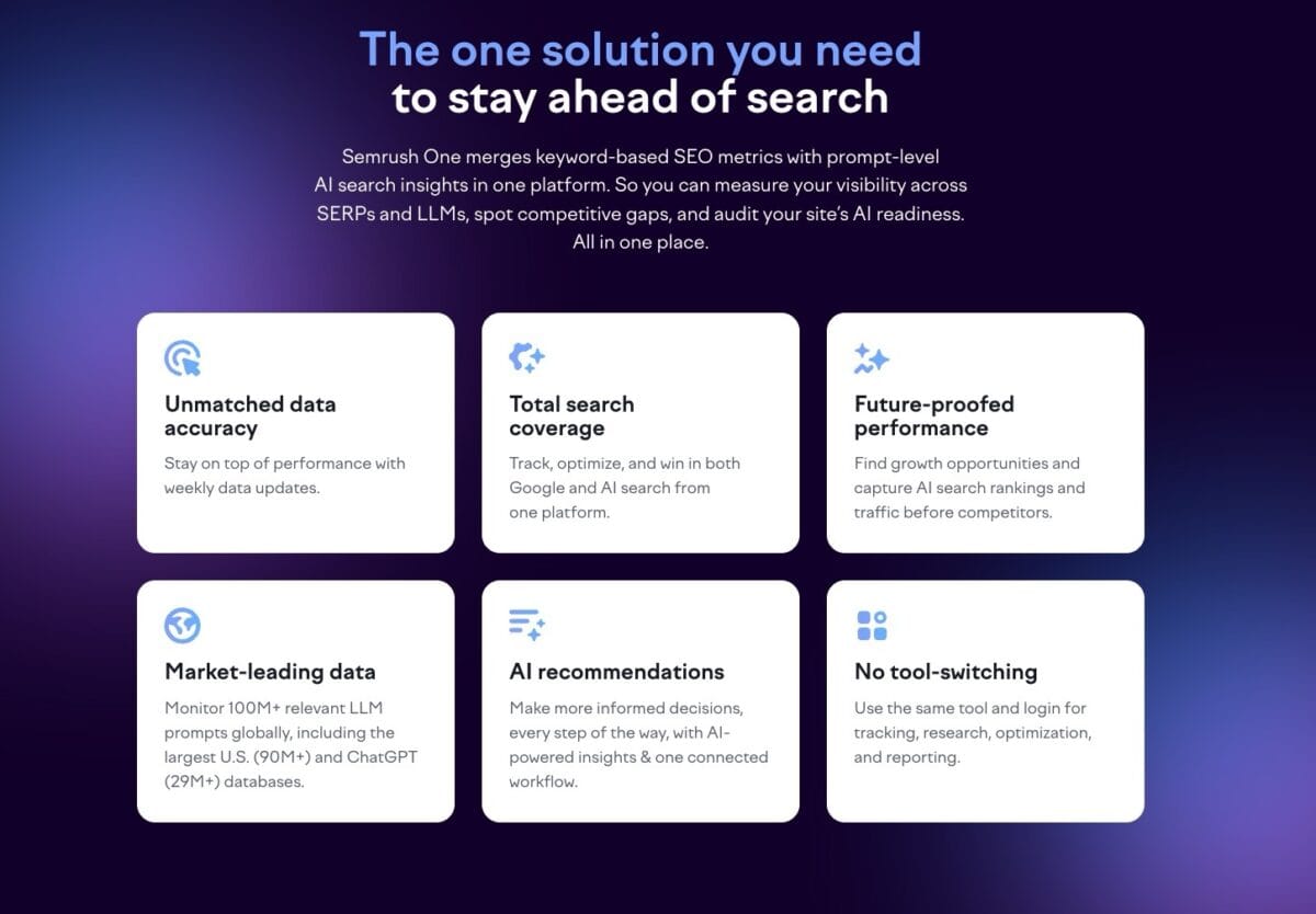 With Semrush One, users can: