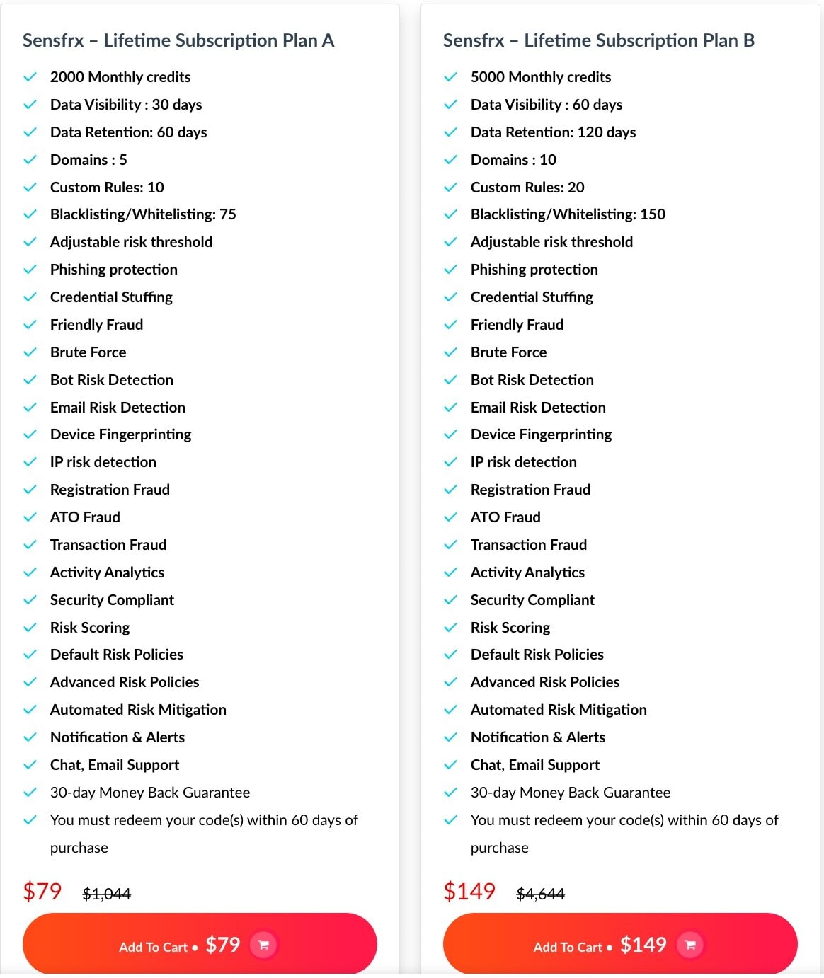 🥇 Get Sensfrx Lifetime Subscription Plan A for $79 with following features: