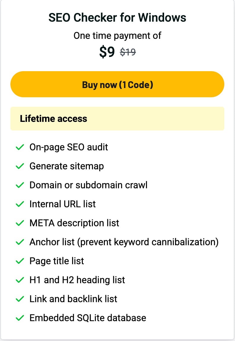 🎖️ Get SEO Checker for Windows Lifetime Deal Tier-1 for $9 with following features: