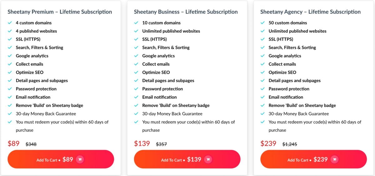 💎 Sheetany Agency Lifetime Deal for $239 with everything above +