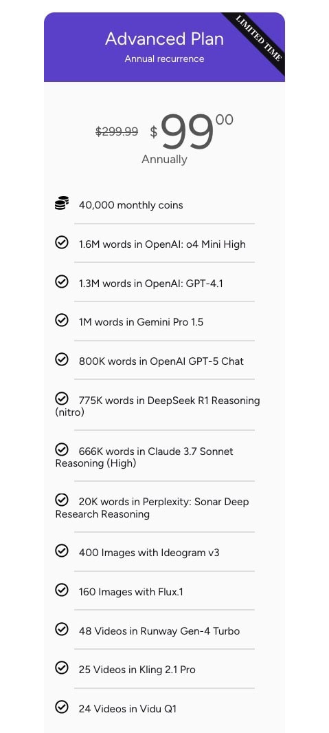🏅 Get Straico Advanced Annual Deal for $99 $299.99per year with following features: