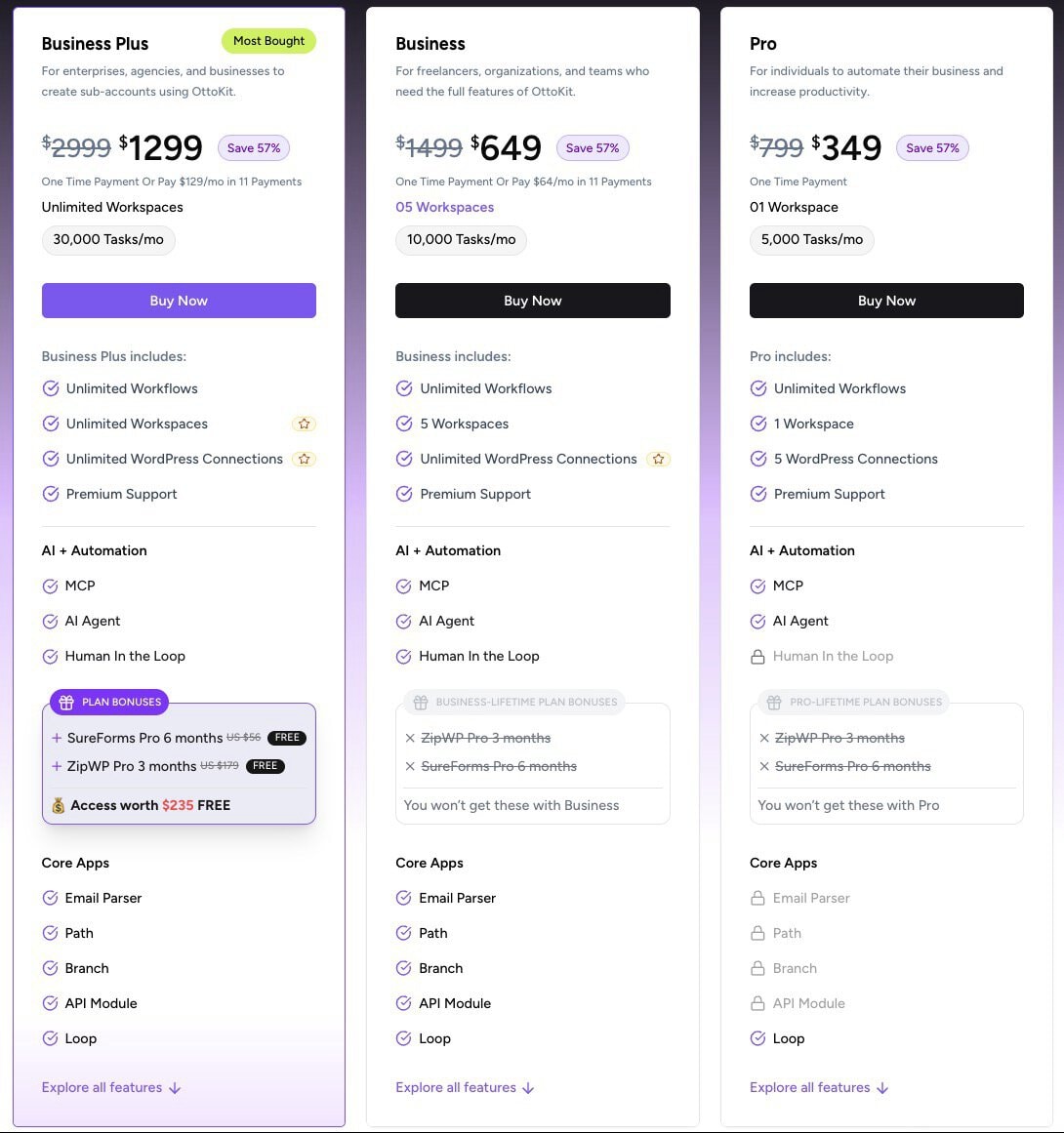 - Bonus Access worth $235 FREE ( SureForms Pro 6 months US $56 FREE & ZipWP Pro 3 months US-$179 FREE)