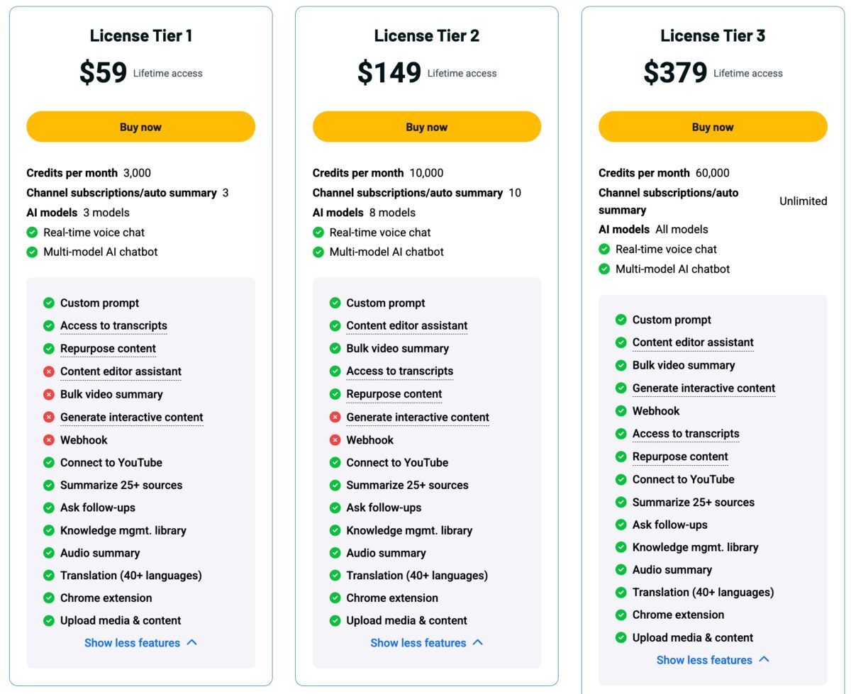 🥉 Get TubeOnAI Lifetime Deal License Tier 3 for $379 with everything above +