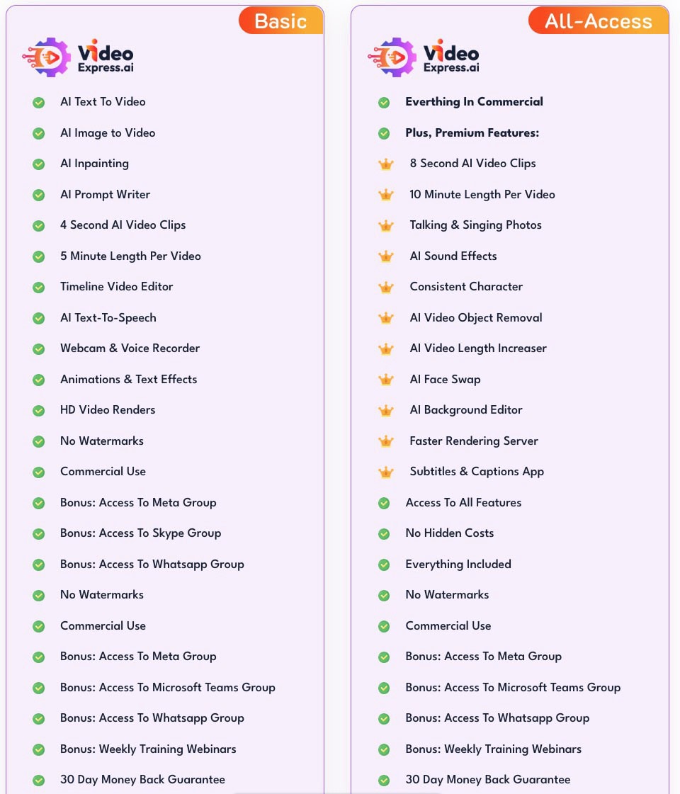 Get the VideoExpress All Access Plan lifetime deal for $179 with everything above +