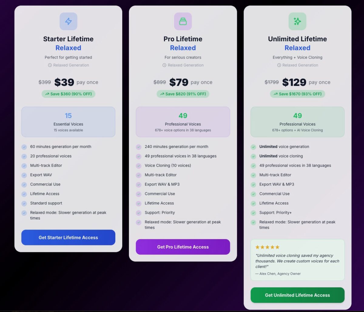 Get VoiceWave Lifetime Deal Pro for $79 with everything above +