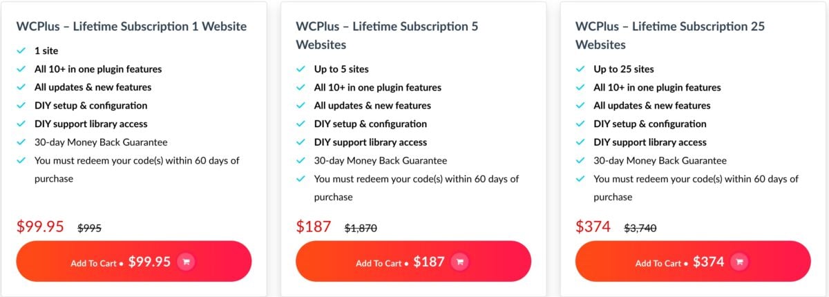 🥇 Get WCPlus Lifetime Deal for 1 Website at $99.95 with following features: