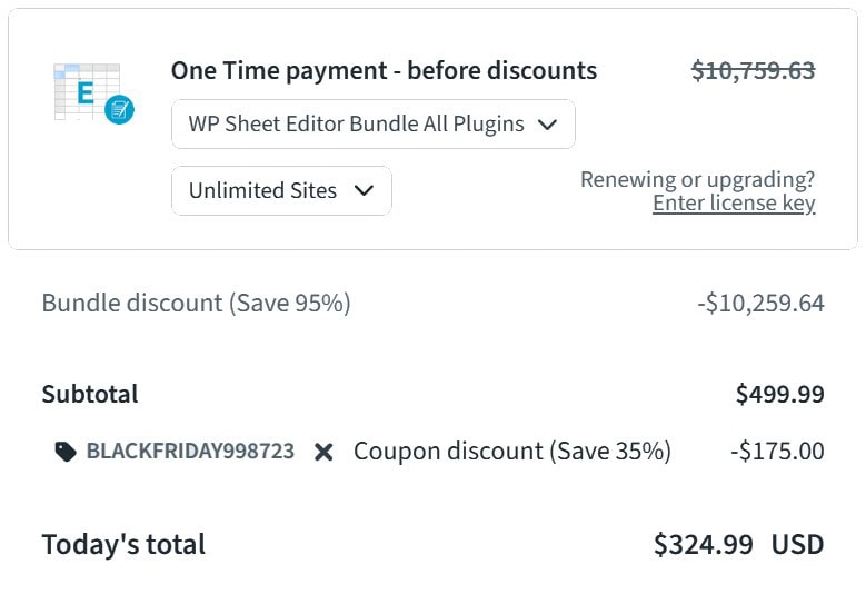 🎁 Get the WP Sheet Editor Lifetime Bundle for $324.99 $499.99 with the following features: