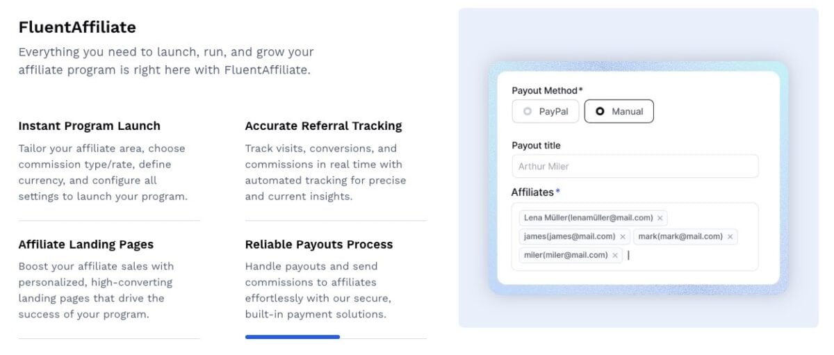 - Reliable Payouts Process: Handle payouts and send commissions to affiliates with built-in payment solutions.