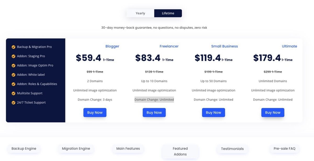 $199and License Transfer: Unlimited - Unlimited Domains Ultimate Lifetime Plan with Domain Change: Unlimited for $179.4